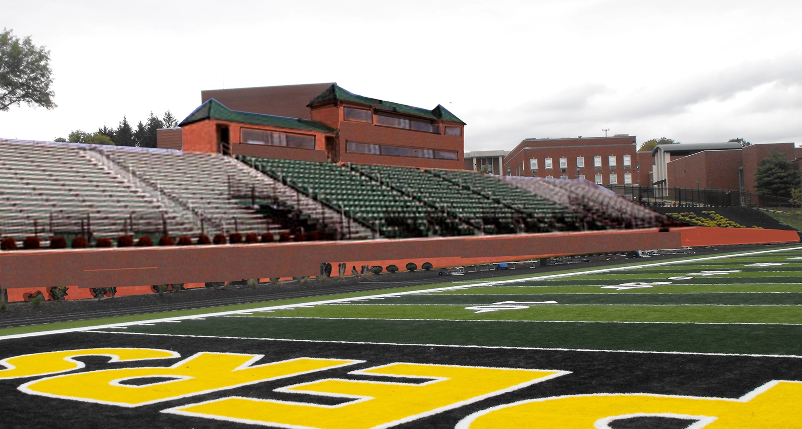 Rather than simply upgrading the playing surface, McKinley Sports approached the project with a broader vision—one that would reshape the identity of Russeck Stadium and its presence on campus. The design concept included improvements to the field itself, as well as a comprehensive transformation of the stadium’s infrastructure, aesthetics, and visibility from key campus vantage points. This included enhanced spectator seating, upgraded team facilities, and architectural features that visually connected the stadium to the rest of the university.